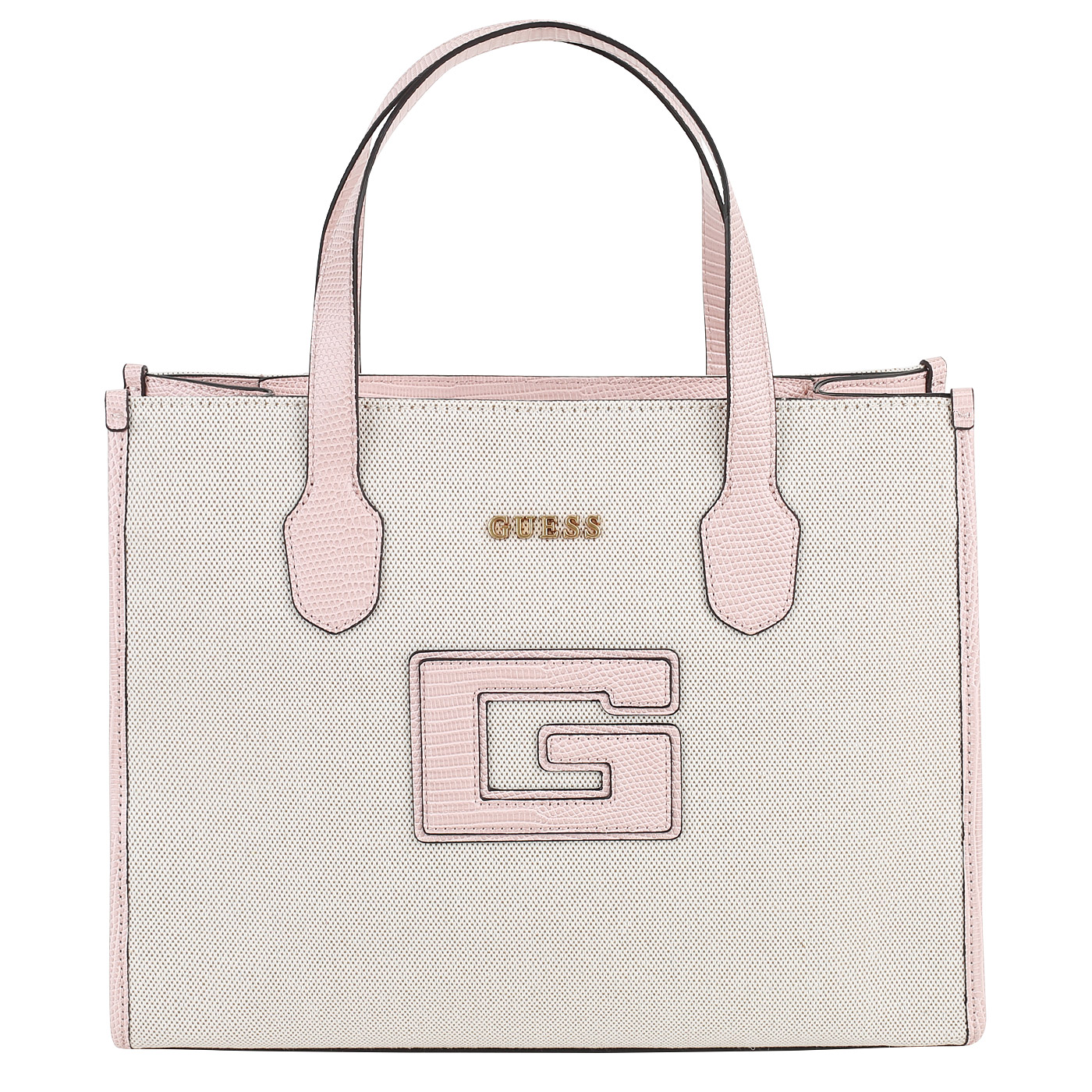 Сумка с двумя ручками Guess G Status 2 HWWK91 98220_natural/light rose_pc - 2000558625548 бежевый полиуретан 34 x 26 x 13 Цена 9320 руб. купить в интернет-магазине PanChemodan.ru в Москве