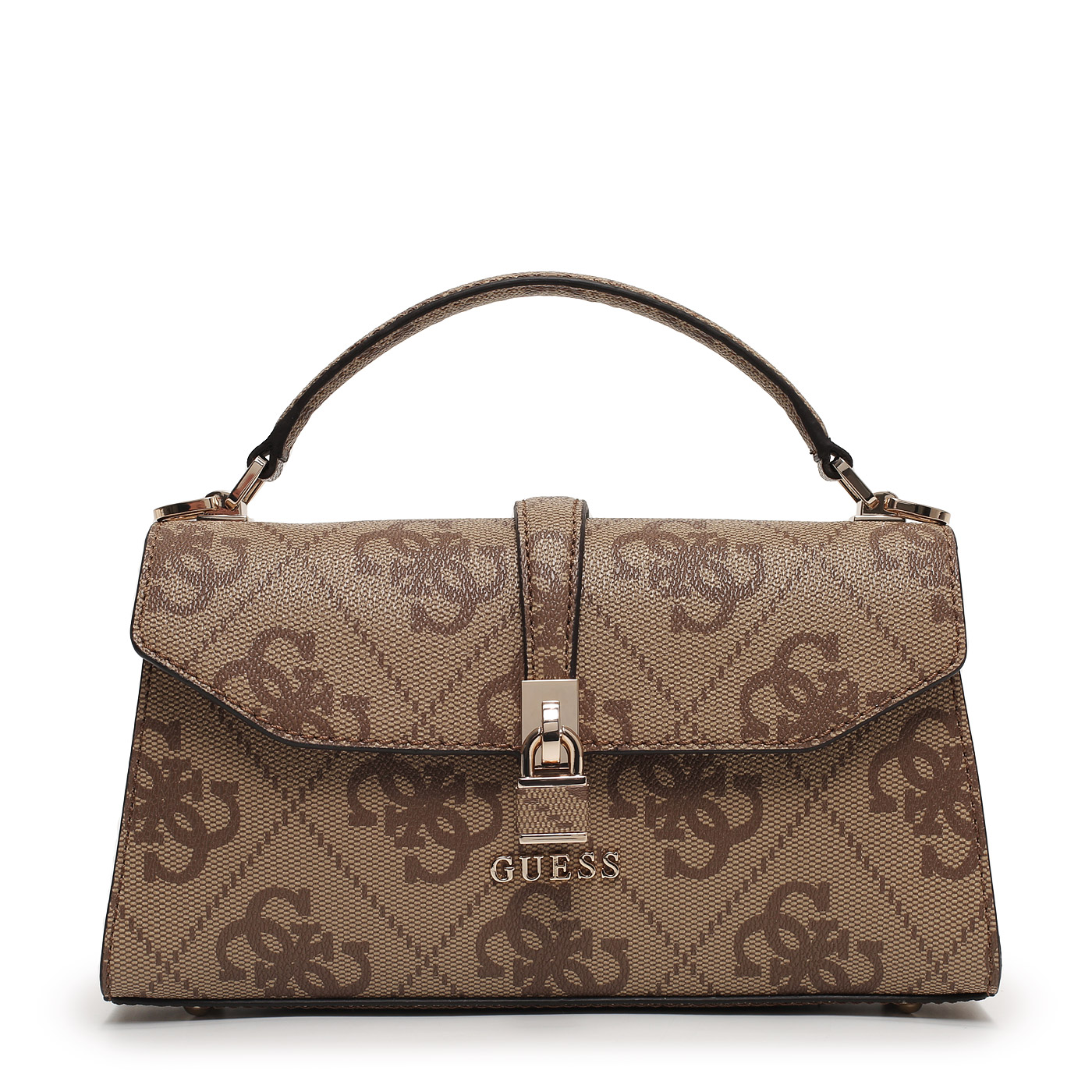 Сумка с короткой ручкой Guess Queensland HWOS96 55200_latte logo_pc - 2000558785013 бежевый полиуретан 25 x 13,5 x 6 Цена 18500 руб. купить в интернет-магазине PanChemodan.ru в Томске